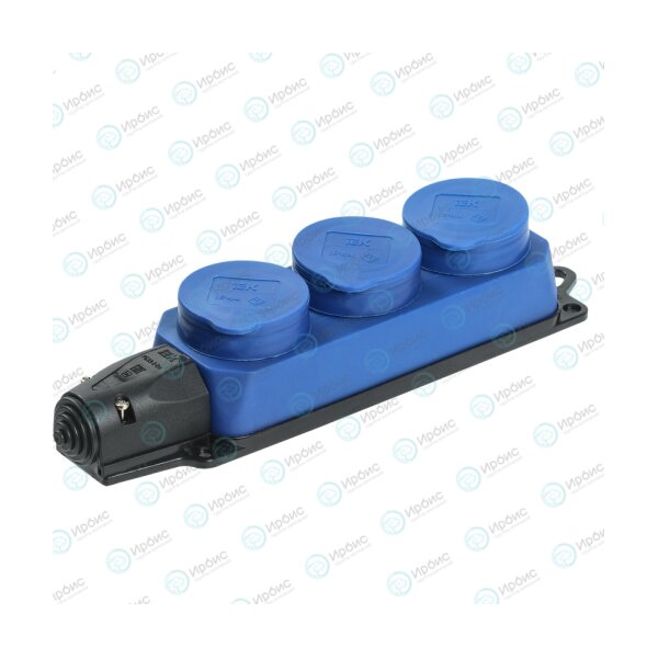Розетка 3-местная, с з/к, IP44, синяя, IEK PKR61-016-2-K07