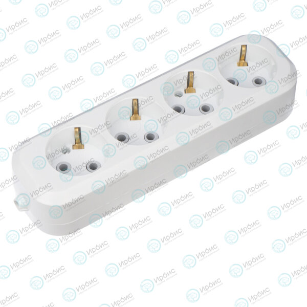 Розетка 4-х местная с з/к 10А, белая, REXANT 11-8707