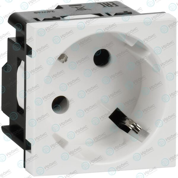 Розетка 45град с заземляющим контактом без защитной шторки и винтовым зажимом (2 модуля) белая