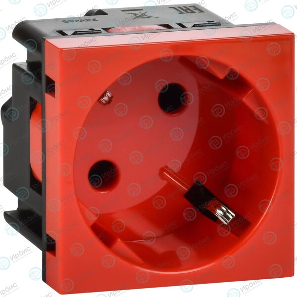 Розетка 45град с заземляющим контактом защитной шторкой и винтовым зажимом (2 модуля) красная