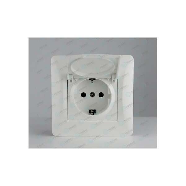 Розетка электрическая 2К+З, с откидной крышкой, 16А, 220-250В, белая, SPL 201002