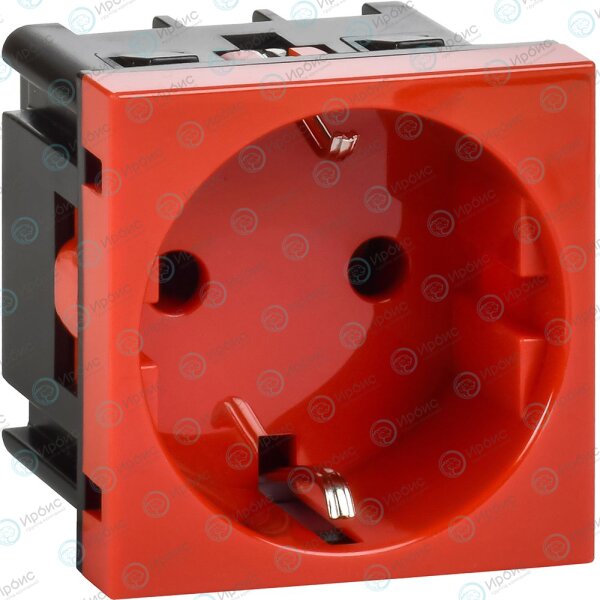 Розетка с заземляющим контактом без защитной шторки и винтовым зажимом (2 модуля) красная