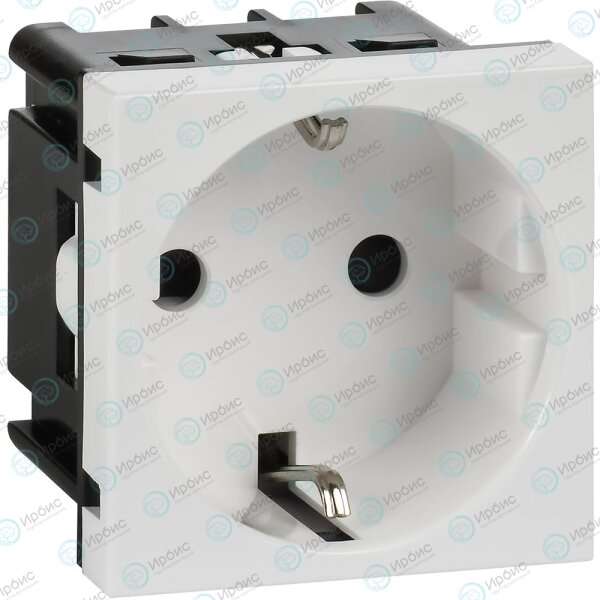 Розетка с заземляющим контактом защитной шторкой и винтовым зажимом (2 модуля) белая