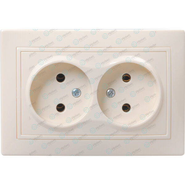 Розетка силовая РСш12-3-ККм, 2местн, с з/к с защ.штор., 16А, кремовый, IEK ERK21-K33-16-DM