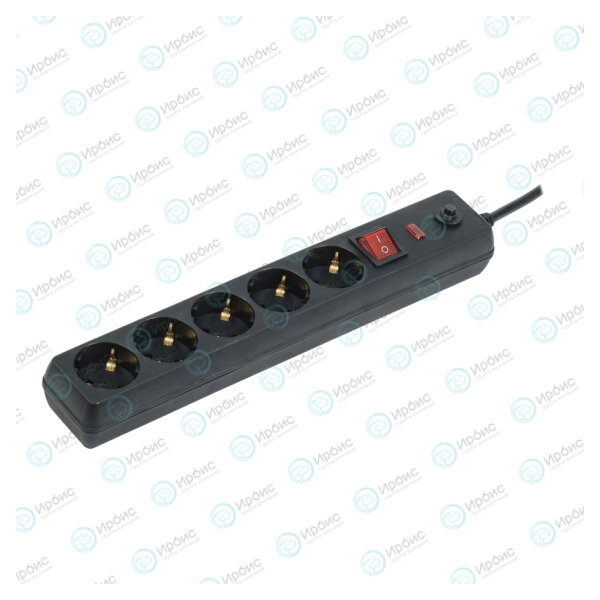 Сетевой фильтр с выкл., 5 мест, 16А, 5м, 3х1мм2, черный, IEK WFP10-16-05-05-ZK-K02
