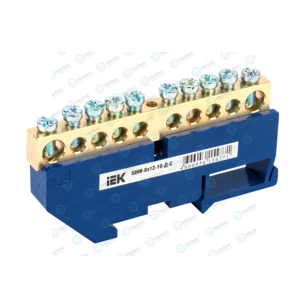 Шина N "ноль" на DIN-изол. ШНИ-8х12-10-Д-С, IEK YNN10-812-10D-K07