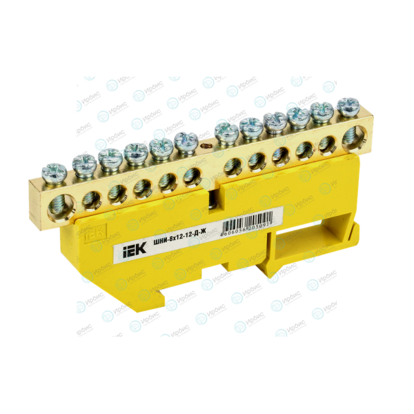 Шина PE "земля" на DIN-изол. ШНИ-8х12-12-Д-Ж, IEK YNN10-812-12D-K05