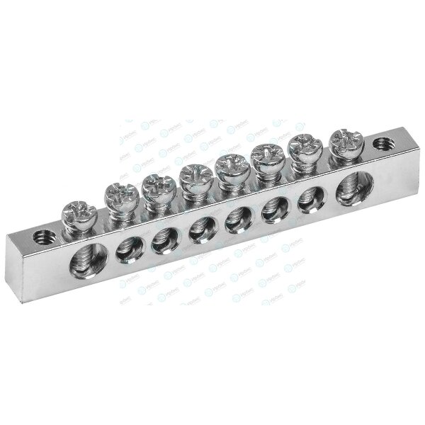 Шина PEN "земля-ноль" 6х9мм 8/2 с никелевым покрытием (8групп/крепеж по краям) IEK