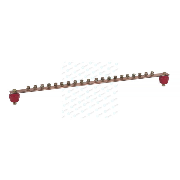 Шина заземления предназначена для установки в телекоммуникационные шкафы и стойки размерностью 19”. Служит для заземления установленного оборудования. Нагрузочная способность 200А. Представляет собой прямоугольный металлопрокат из сплава меди сечением 20х4 мм соединенную с монтажными кронштейнами диэлектрическими изоляторами. Имеет 20 точек подключения с винтами М6.