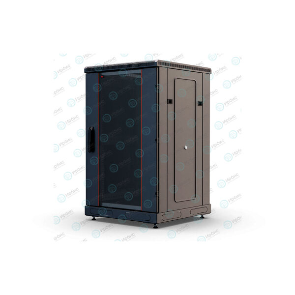 За счет элементов крепления каркас шкафа имеет повышенную жесткость. Распределенная вертикальная нагрузка до 800 кг. Стандартно шкаф комплектуется: передней дверью, боковыми и задней стенками с замками.