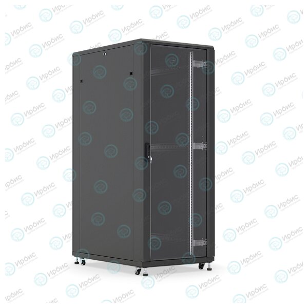 Шкаф напольный 19", 18U, 988x600х1000мм, стеклянная передняя дверь, задняя металлическая, черный, DANNMAN TXQ1861GS30ВК