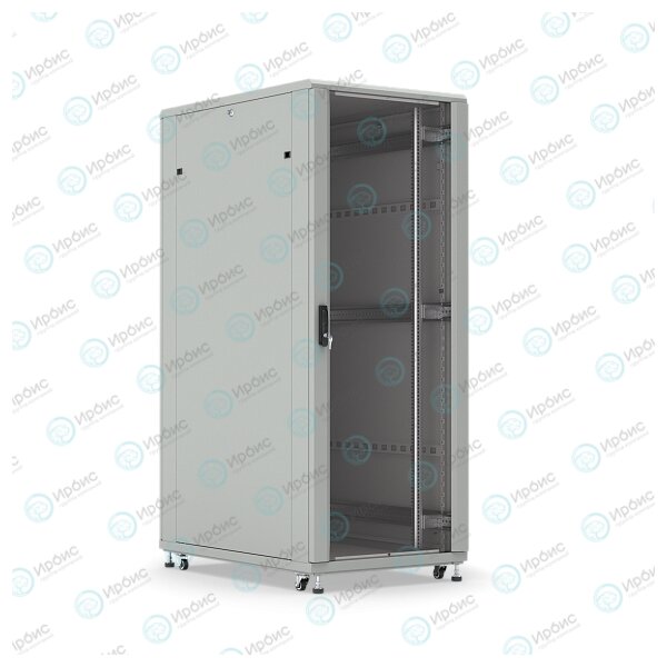 Шкаф напольный 19", 18U, 988x600х600мм, стеклянная передняя дверь, задняя металлическая, серый, DANNMAN TXQ1866GS30GY