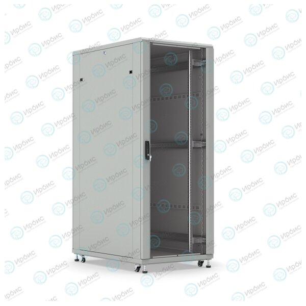 Шкаф напольный 19", 18U, 988x600х800мм, стеклянная передняя дверь, задняя металлическая, серый, DANNMAN TXQ1868GS30GY