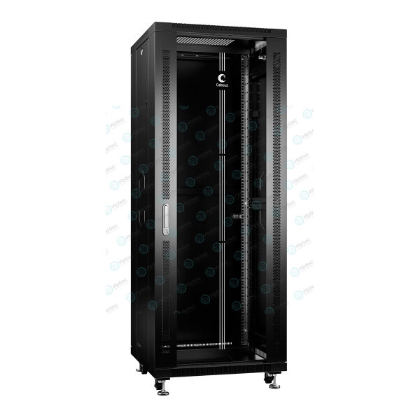 Шкафы CABEUS оптимальное решение для установки кроссового, телекоммуникационного серверного оборудования, стандарта 19 дюймов (19"). Имея современный дизайн, шкафы предназначены для установки и использования внутри помещений. В основе шкафа лежит конструкция из двух сварных рам, что позволяет без труда выдерживать нагрузку до 800 кг. В основание шкафа и в крыше предусмотрены щеточные вводы для защиты оборудования от пыли при вводе информационного и силового кабеля. В шкафу великолепно продумана естественная (пассивная) вентиляция, за счет перфорации в корпусе шкафа и на передней дверце. А так же, конструктивно, предусмотрена установка активной вентиляции. Четыре 19" монтажных L - профиля, имеют юнитовую (U) разметку в соответствии со стандартом DIN 41494-7, глубина установки направляющих может изменяться в зависимости от устанавливаемого оборудования. Две съемные боковые панели – обеспечивают удобный доступ к установленному оборудованию. Фиксация боковых панелей, осуществляется при помощи защелок.