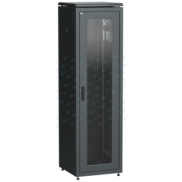 Шкаф напольный 19", 38U, 600х800мм, стекл. перед. дверь, задн. метал., черный, LINEA N, ITK LN05-38U68-GM