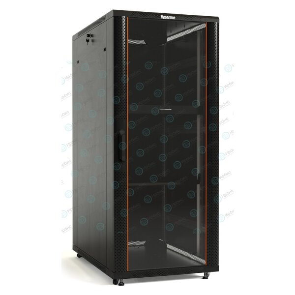 Шкаф напольный 19", 42U, 600х1000мм, стекл. дверь, черный, Hyperline TTB-4261-AS-RAL9004