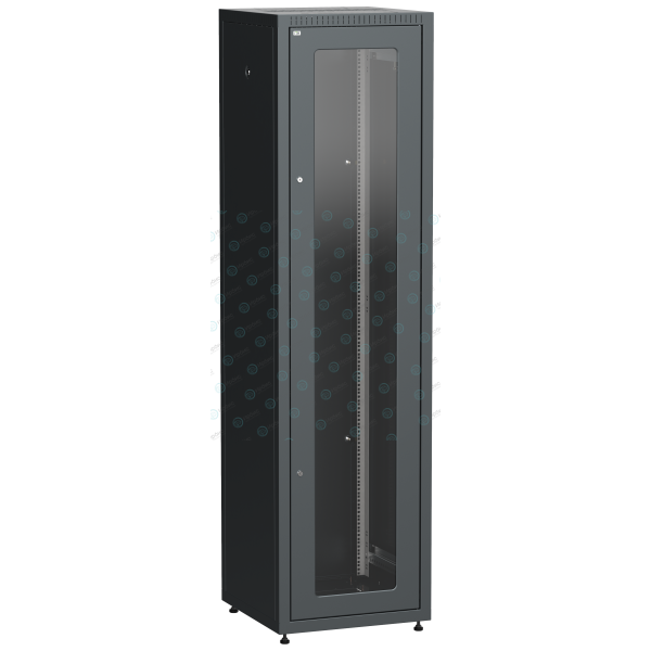 Шкаф напольный 19", 42U, 600х600мм, стекл. перед. дверь, задняя метал., черный, LINEA E ITK LE05-42U66-GM