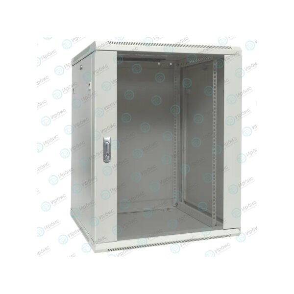 Шкаф настенный 19", 12U, 600х600мм, стекл. дверь, серый, TERACOM PRO TRP-WLL-1266-40G