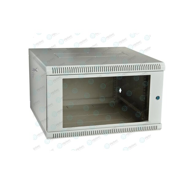 Выполнен в климатическом исполнении УХЛ 4.2, эксплуатируется в закрытых помещениях при температуре от 5 до 40 °С, при верхнем рабочем значении относительной влажности 80% при температуре 25 °С. Имеет полностью разборную конструкцию и состоит из шести основных частей: крыша, дно, две съемные боковые стенки с вертикальными направляющими, дверь, задняя стенка* и две передние направляющие. За счет элементов крепления каркас шкафа имеет повышенную жесткость. Комплектация шкафа возможна с несколькими исполнениями двери-металлической, перфорированной и с каленым ударопрочным, тонированным стеклом. Предусмотрены два кабельных ввода в верхней и нижней частях шкафа, размер – 100х50 мм. В основание или крышу шкафа возможна установка вентиляторного модуля. Для установки модуля демонтируется заглушка, и модуль фиксируется шестью винтами. Вертикальные направляющие регулируются по глубине. Система заземления шкафа входит в стандартную комплектацию. *Поставляется отдельно, по требованию заказчика.
