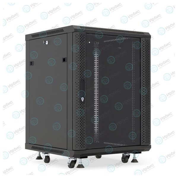 Шкаф настенный 19", 12U, 650x600х450мм, стеклянная дверь, черный, DANNMAN WXP1245GFBK