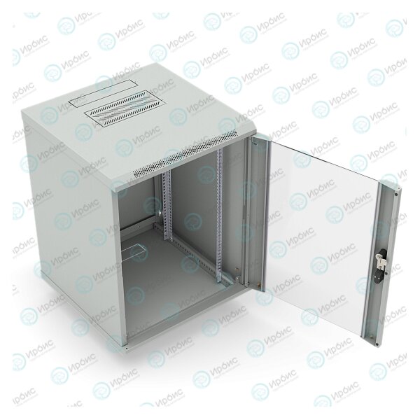 Шкаф настенный 19", 12U, 650x600х450мм, стеклянная дверь, серый, DANNMAN WXD1245GGY