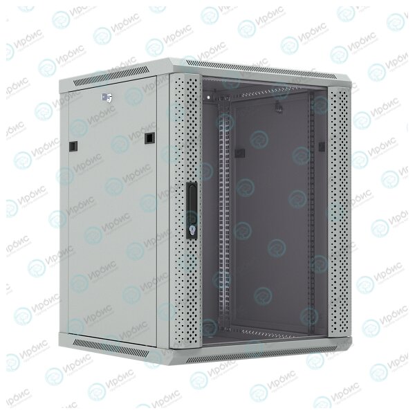 Шкаф настенный 19", 12U, 650x600х450мм, стеклянная дверь, серый, DANNMAN WXP1245GGY