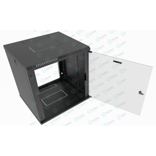 Шкаф настенный 19", 12U, 650х600х550мм, стекл. дверь, черный, DANNMAN WXU1255GBK