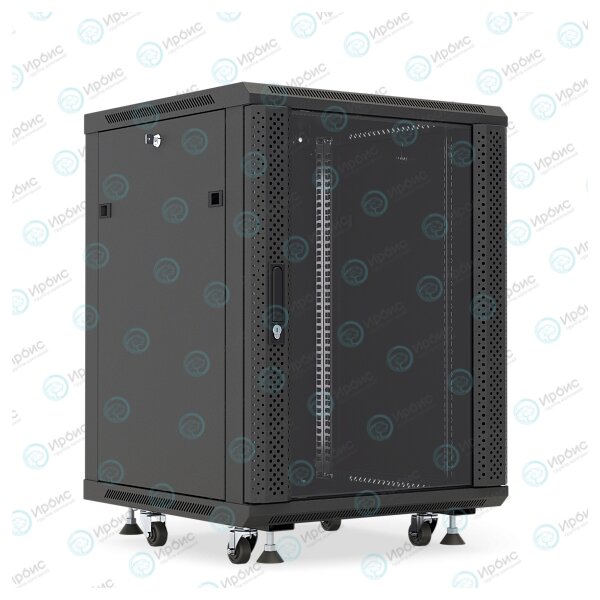 Шкаф настенный 19", 12U, 650x600х600мм, стеклянная дверь, черный, DANNMAN WXP1266GFBK