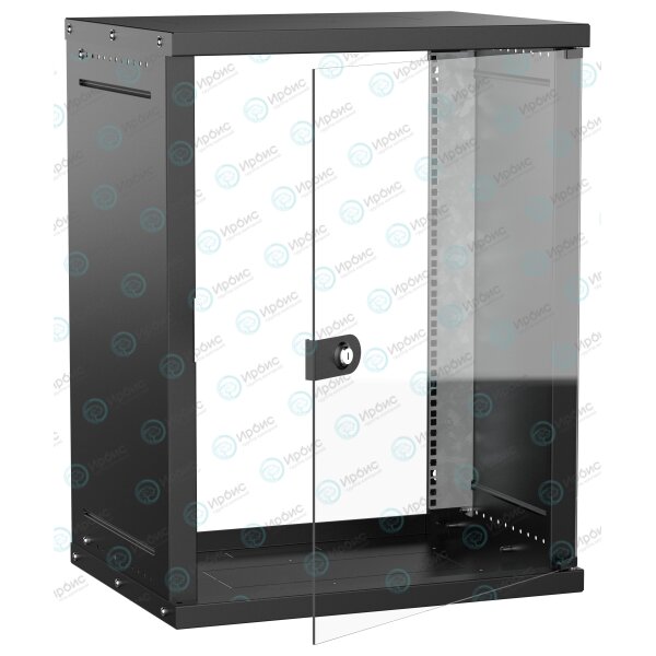 Шкаф настенный 19" 15U 600х450мм стеклянная дверь черный GENERICA