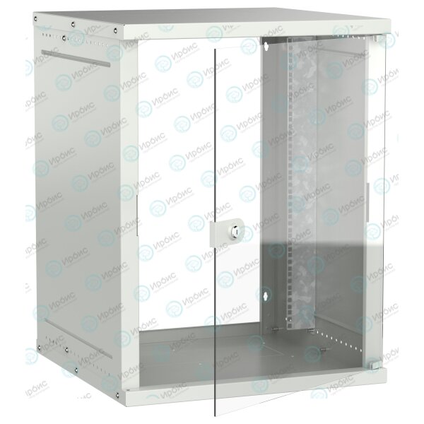 Шкаф настенный 19" 15U 600х600мм стеклянная дверь серый GENERICA