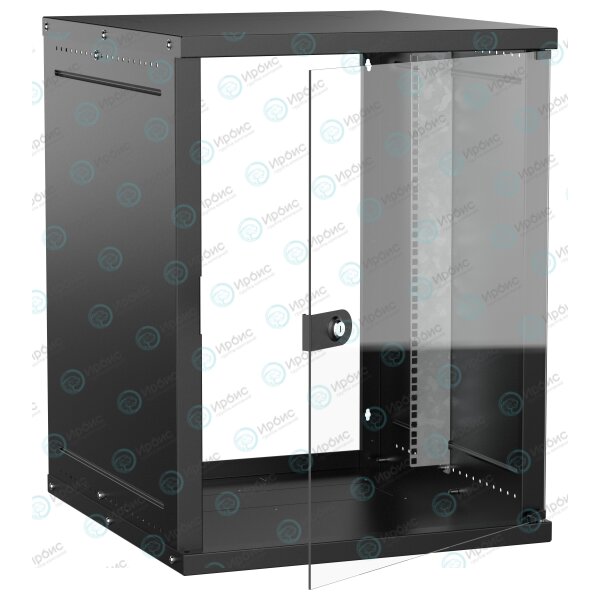 Шкаф настенный 19" 15U 600х650мм стеклянная дверь черный GENERICA