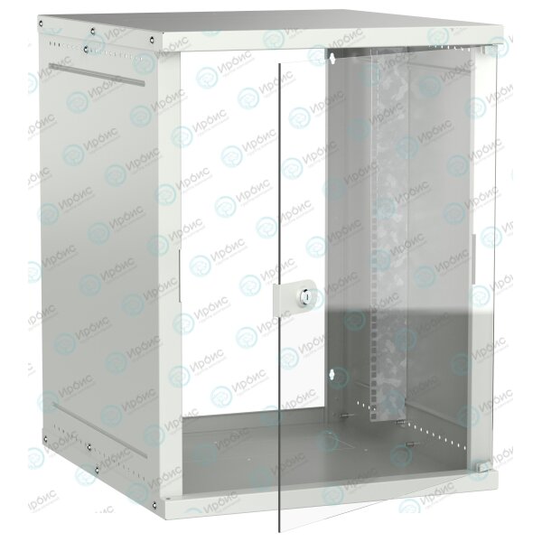 Шкаф настенный 19" 15U 600х650мм стеклянная дверь серый GENERICA