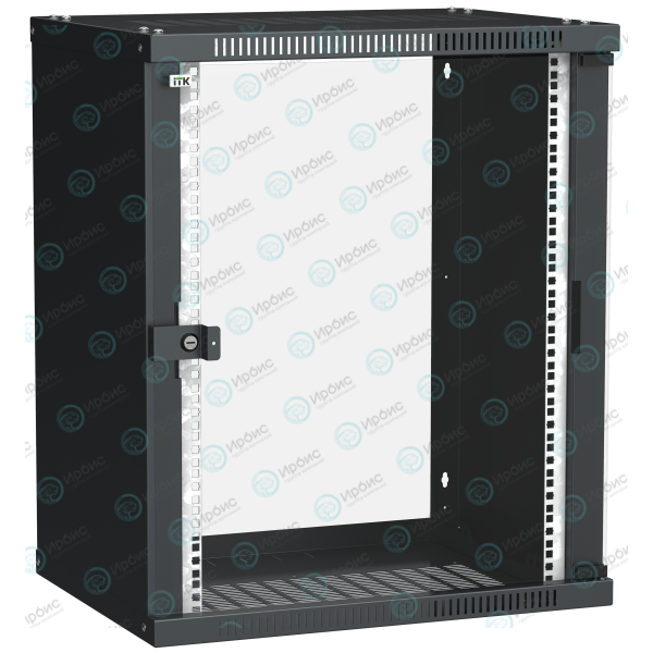 Шкаф настенный 19", 15U, 600х450мм, стекл. дверь, черный, LINEA WE, ITK LWE5-15U64-GF