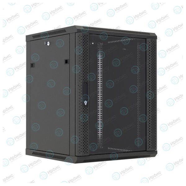 Шкаф настенный 19", 15U, 775x600х450мм, стеклянная дверь, черный, DANNMAN WXP1545GBK