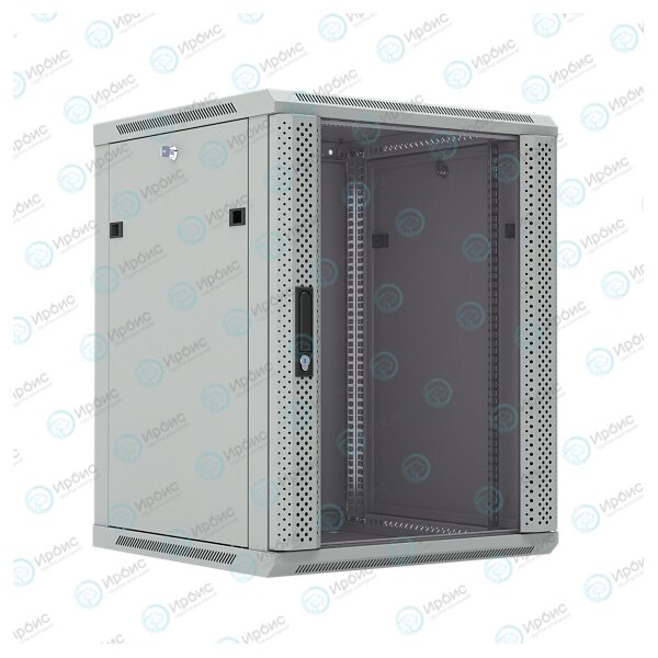 Шкаф настенный 19", 15U, 775x600х600мм, стеклянная дверь, серый, DANNMAN WXP1566GGY
