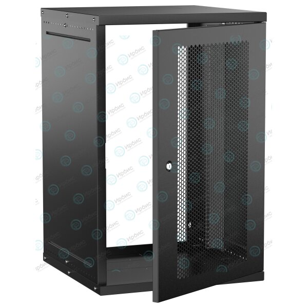 Шкаф настенный 19" 18U 600х600мм перфорированная дверь черный GENERICA