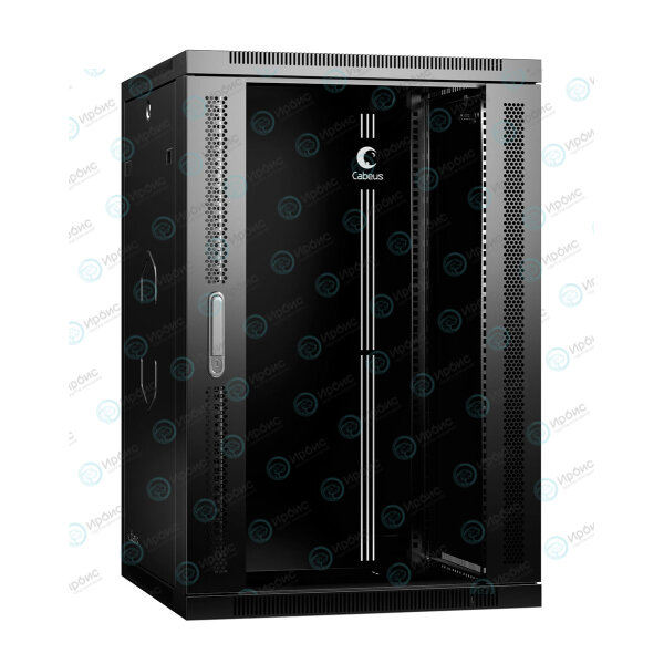 Шкаф настенный 19" 18U 600x450x901мм, дверь стекло, черный, Cabeus SH-05F-18U60/45-BK