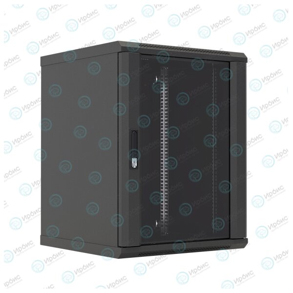 Шкаф настенный 19", 18U, 908x600х450мм, стеклянная дверь, черный, DANNMAN WXD1845GBK