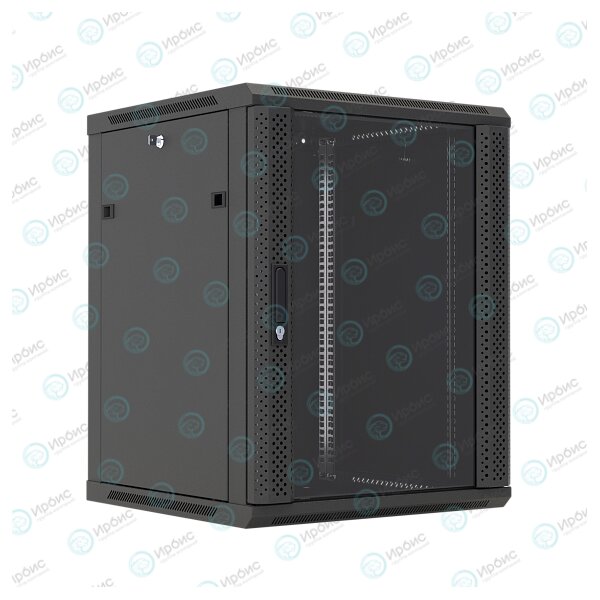 Шкаф настенный 19", 18U, 908x600х450мм, стеклянная дверь, черный, DANNMAN WXP1845GBK