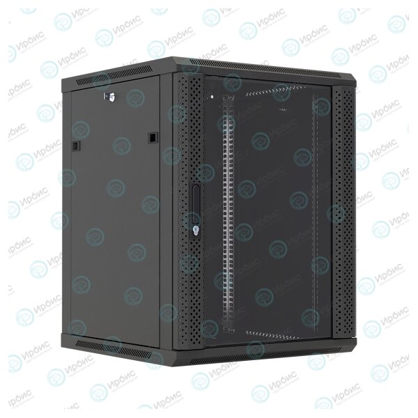 Шкаф настенный 19", 18U, 908x600х600мм, стеклянная дверь, черный, DANNMAN WXP1866GBK