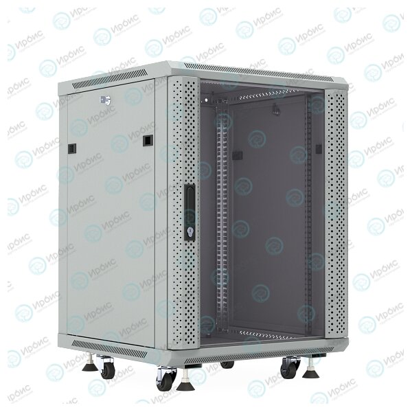 Шкаф настенный 19", 18U, 908x600х600мм, стеклянная дверь, серый, DANNMAN WXP1866GFGY