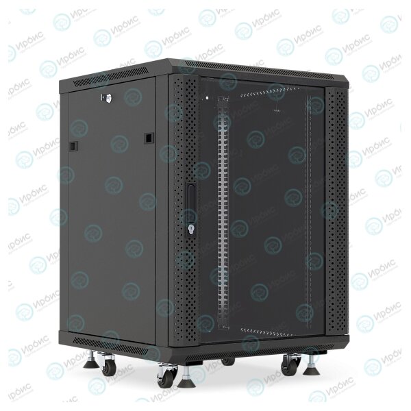 Шкаф настенный 19", 18U, 908x600х800мм, стеклянная дверь, черный, DANNMAN WXP1868GFBK