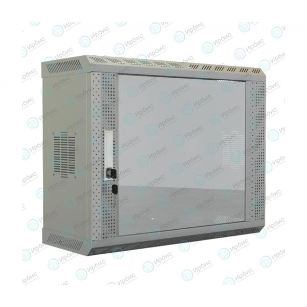 Шкаф настенный 19-дюймовый (19"), 22U, 1086х600х250, со стеклянной дверью, несъемные боковые панели, цвет серый (RAL 7035) (собранный)