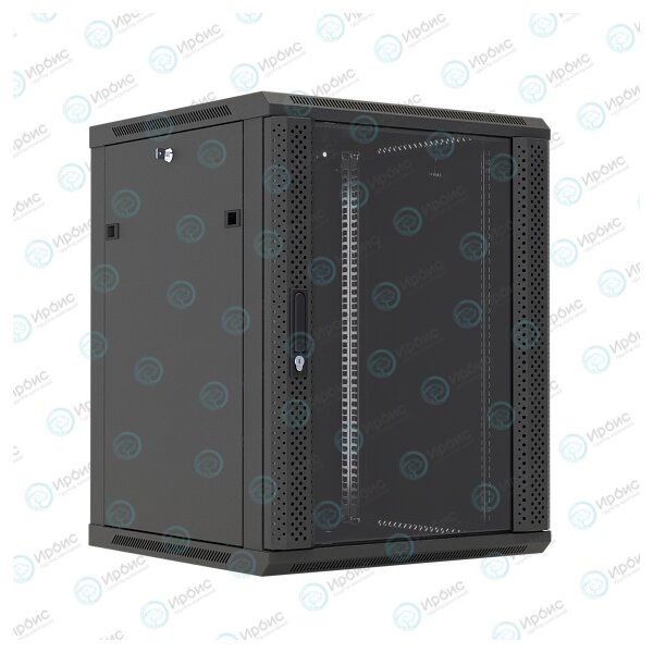 Шкаф настенный 19", 22U, 1086x600х600мм, стеклянная дверь, черный, DANNMAN WXP2266GBK