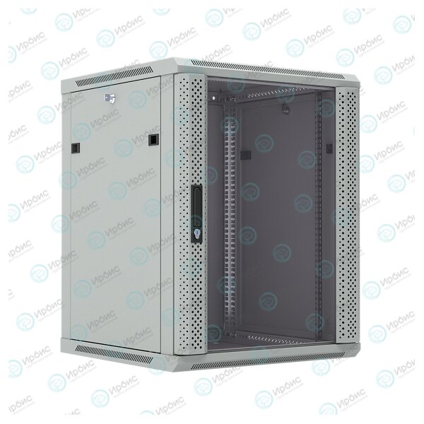 Шкаф настенный 19", 22U, 1086x600х600мм, стеклянная дверь, серый, DANNMAN WXP2266GGY