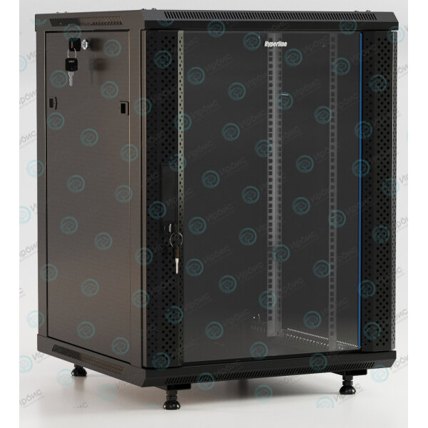 Hyperline TWB-FC-2245-GP-RAL9004 Шкаф настенный 19-дюймовый (19"), 22U, 1086x600х450мм, стеклянная дверь с перфорацией по бокам, ручка с замком, с возможностью установки на ножки (в комплекте), цвет черный (RAL 9004) (разобранный)