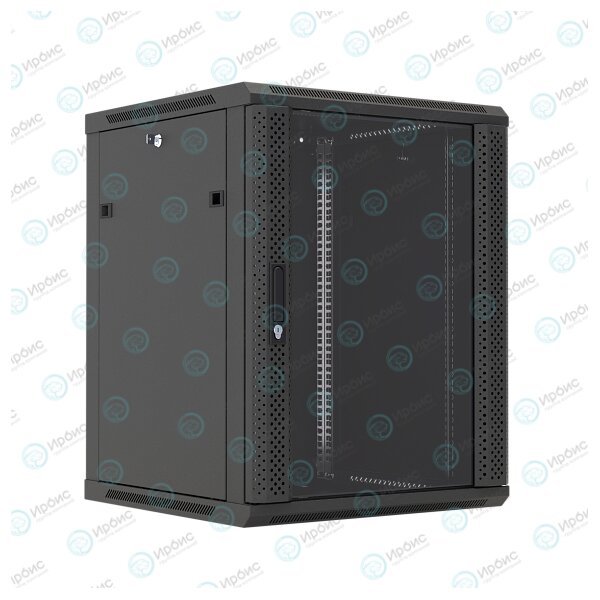 Шкаф настенный 19", 27U, 1304x600х600мм, стеклянная дверь, черный, DANNMAN WXP2766GBK