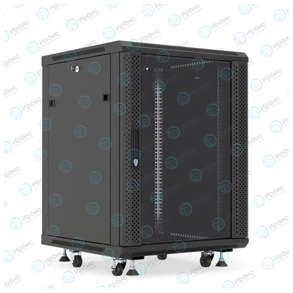 Шкаф настенный 19", 27U, 1304x600х600мм, стеклянная дверь, черный, DANNMAN WXP2766GFBK