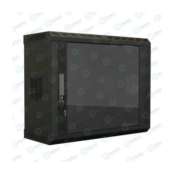 Hyperline TWS-0625-GP-RAL9004 Шкаф настенный 19-дюймовый (19"), 6U, 367х600х250, со стеклянной дверью, несъемные боковые панели, цвет черный (RAL 9004) (собранный)