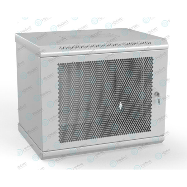 Шкаф настенный 19", 6U, 367х600х300мм, перф.дверь, серый, Hyperline TWL-0630-SD-RAL7035